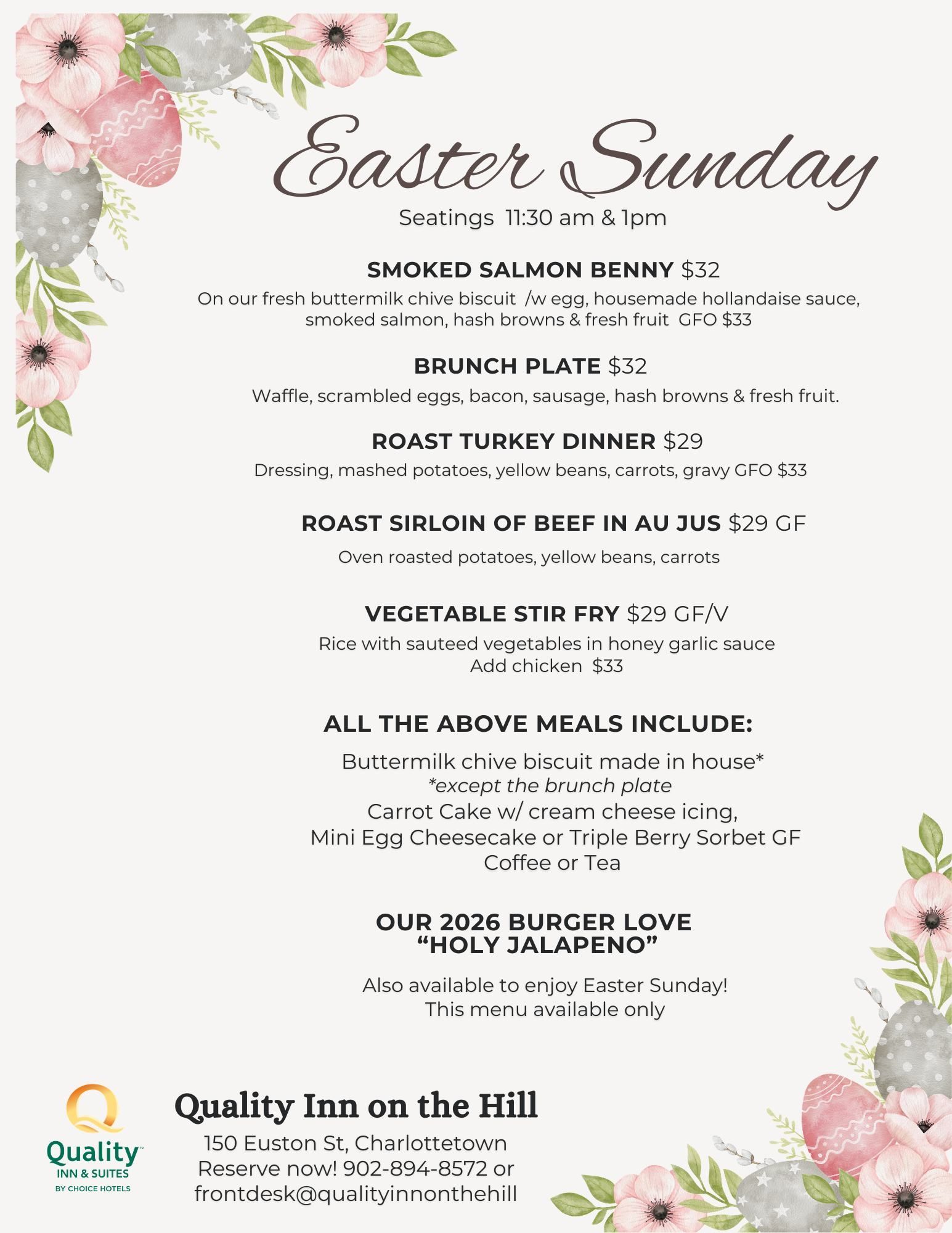 Reservations: Email: frontdesk@qualityinnonthehill.com or Call: 902-894-8572