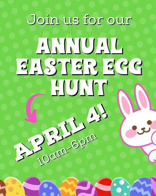 The annual Easter Egg Hunt will take place this year on Saturday, April 4th from 10am - 6pm