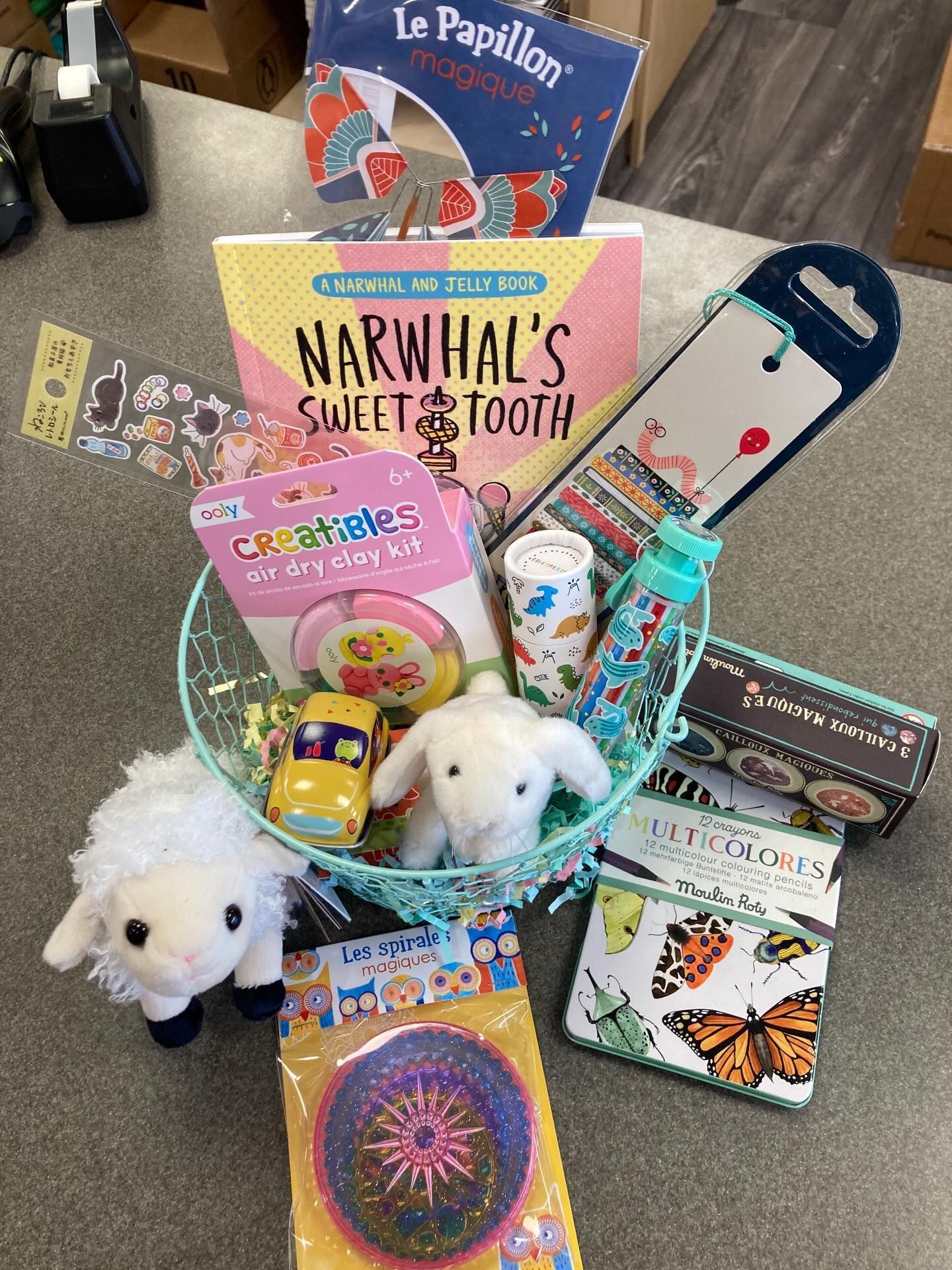 Details: Easter basket with some of Bookmark staff picks and favorite treats.